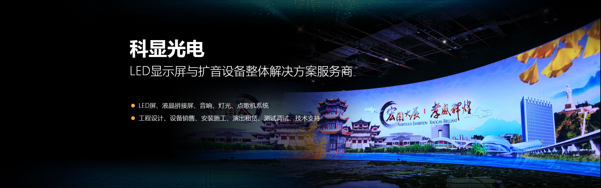 武漢科顯光電有限公司是一家集工程設(shè)計(jì)、設(shè)備銷售、安裝施工、演出租賃、測試調(diào)試、技術(shù)支持等多元化服務(wù)為一體的專業(yè)LED屏、液晶拼接屏、音響、燈光、點(diǎn)歌機(jī)系統(tǒng)集成服務(wù)商。在市政、交通運(yùn)輸、銀行證券、體育場館、商場、機(jī)場、車站、港口、醫(yī)院、院校、教育系統(tǒng)、工商、稅務(wù)、KTV等領(lǐng)域得到廣泛應(yīng)用。...